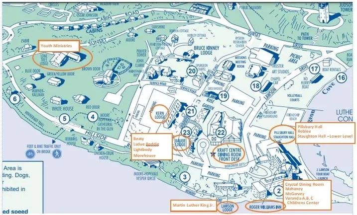 As a group after the daily teachings; Youth with the leaders may decide to go to the main session to hear the speaker at Pillsbury Hall. Otherwise, they will stay and have activities/fun/fellowship time.